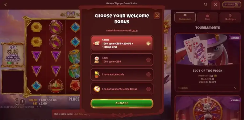 💯 Get 100% bonus up to €500 + 🎉 200 Free Spins on your first deposit!